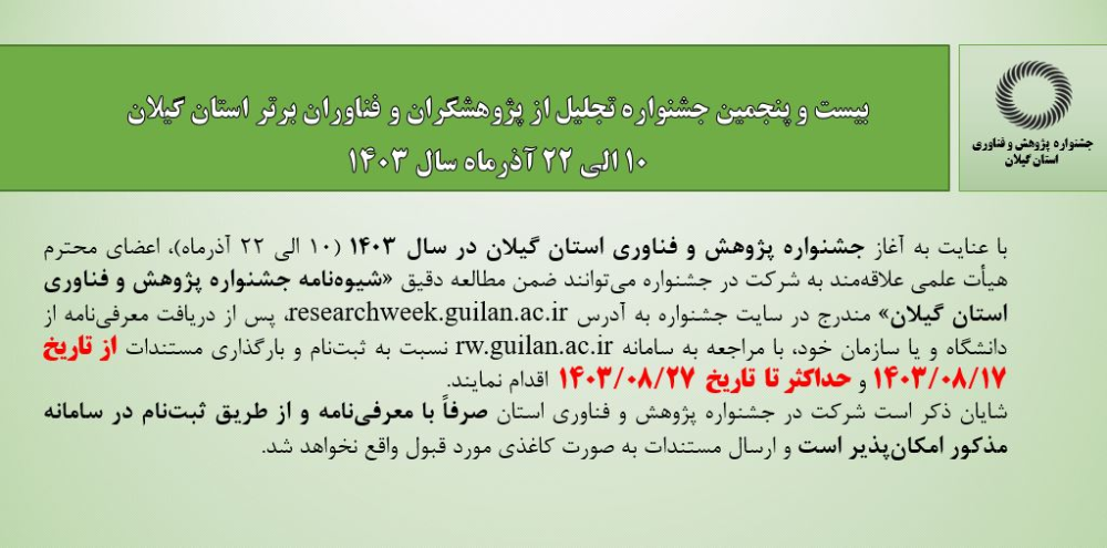 فراخوان جشنواره پژوهش و فناوری استان گیلان سال 1403